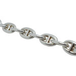 スタッド(バー)付きのコマが特徴で、これは実際のアンカーチェーンにもある構造です。実用面では鎖が潰れるのを防ぎ、絡まりを抑える役割を果たします。ジュエリーではこの機能美がそのまま装飾的な魅力になっています。