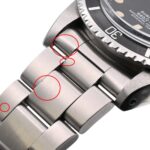 ・購入時はまずケースラグのシリアルとリファレンス刻印を確認してください。刻印が鮮明でフォントや位置が年式と整合していることが本物の重要な目安です。次に文字盤をルーペで見て、ロゴや数字の印刷がシャープか、夜光(トリチウム)の焼け方が自然かを確かめます。印刷のにじみや不自然な夜光はリダンや偽物の兆候です。