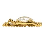 ベゼルはフルーテッド(刻み)タイプが定番で、光を受けて繊細に輝きます。フルーテッドはロレックスらしい伝統的な意匠で、金無垢との相性が非常に良いです