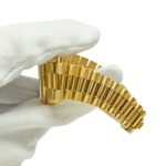 ・外観の状態:ケースやブレスの深い傷、リューズやラグの摩耗を確認。金無垢は擦り傷が目立ちやすいので注意。・ブレスの伸び(ガタ):プレジデントブレスはコマの緩みで伸びやすい。手首でのフィット感を確認。